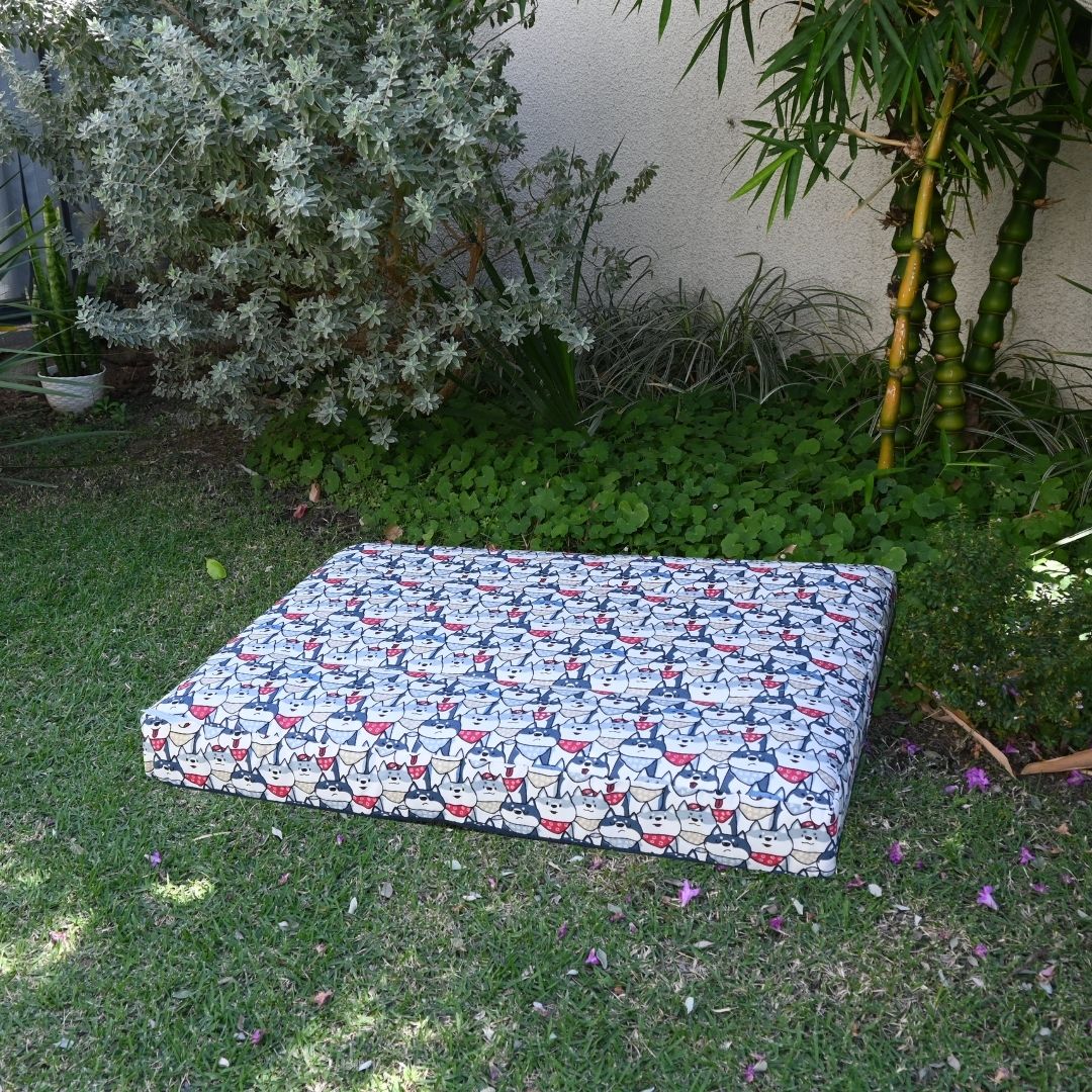 Cama premium para mascotas, cómoda y duradera, con tela impermeable sustentable, base de espuma, funda lavable y diseños coloridos.